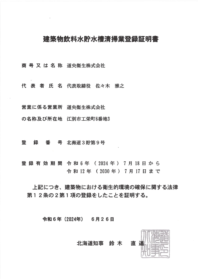 マンションや施設、ビル等に設置されている貯水槽(受水槽や高架水槽)は、一定の大きさ以上の物は水道法や条例で1年に一回の定期清掃と水質検査が義務付けられています。